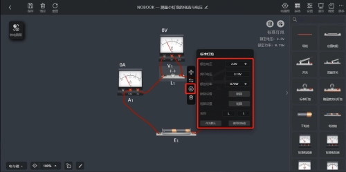 1. 可随时切换模块 2. 按照需求从右侧器材栏选择所需器材,就能开展组装与探究操作