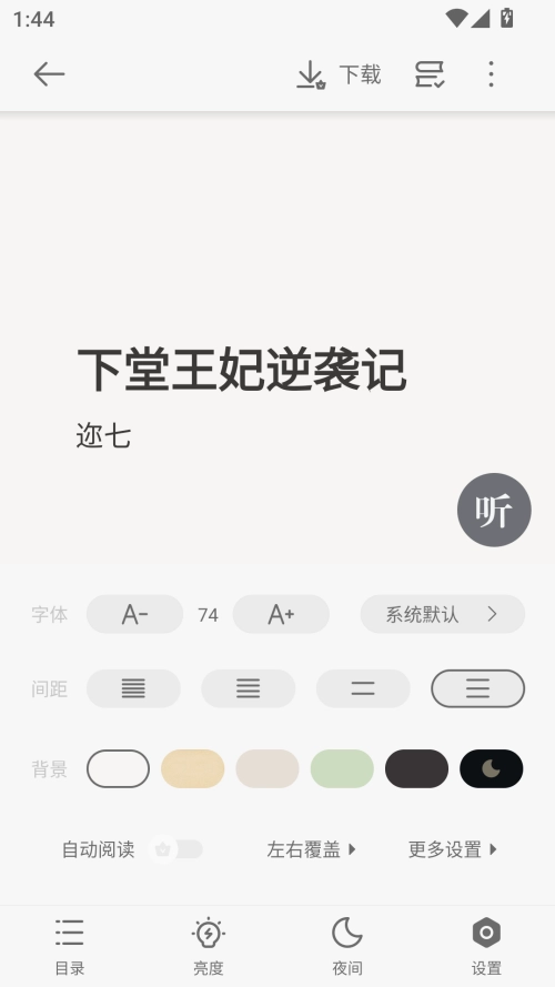 3、阅读时能依据个人喜好调整背景颜色、字体大小、翻页模式等,打造专属于自己的阅读环境。