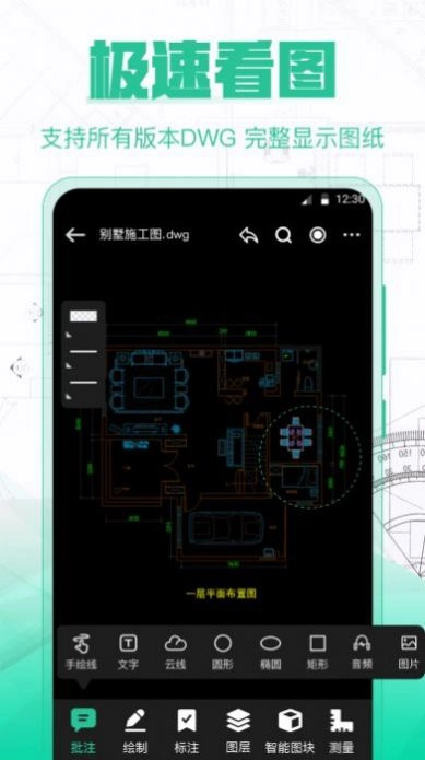 1、极速查看:CAD极速看图王可快速加载各类CAD图纸,迅速呈现设计细节,无需等待,提升工作效率。