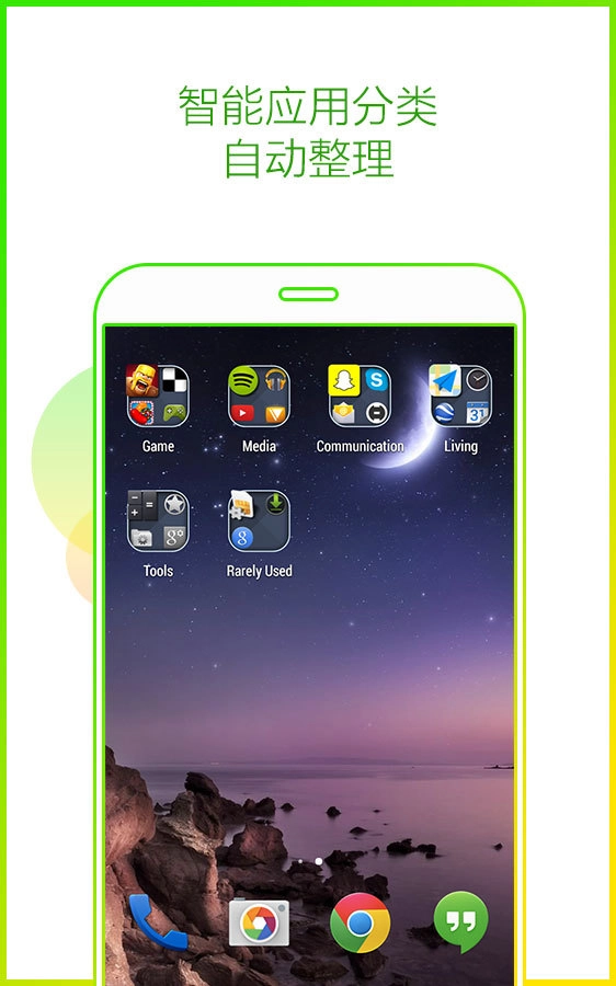 可以把桌面上杂乱的图标按照类别自动整理到对应的文件夹里,这样不仅能让桌面变得更整洁,还能让查找和定位应用程序的过程变得更加简单便捷。