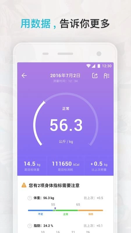 2、可实时同步Comper智能体重秤,对体重数据进行测量、分析与记录;