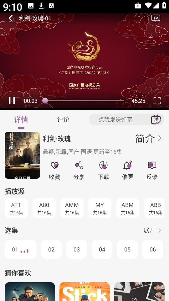 3、挑选任意一部剧集开始播放,比如我们以《利剑玫瑰》为例,点击就能进入播放页面。