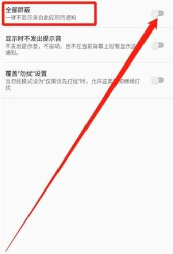 2、打开后,点击“全部屏蔽”右侧的开启图标,即可完成通知屏蔽操作。