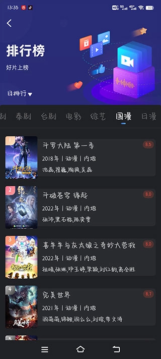 5、要是剧荒了,不妨在首页点击“排行榜”,根据评分和分类找到自己喜欢的热播好剧。