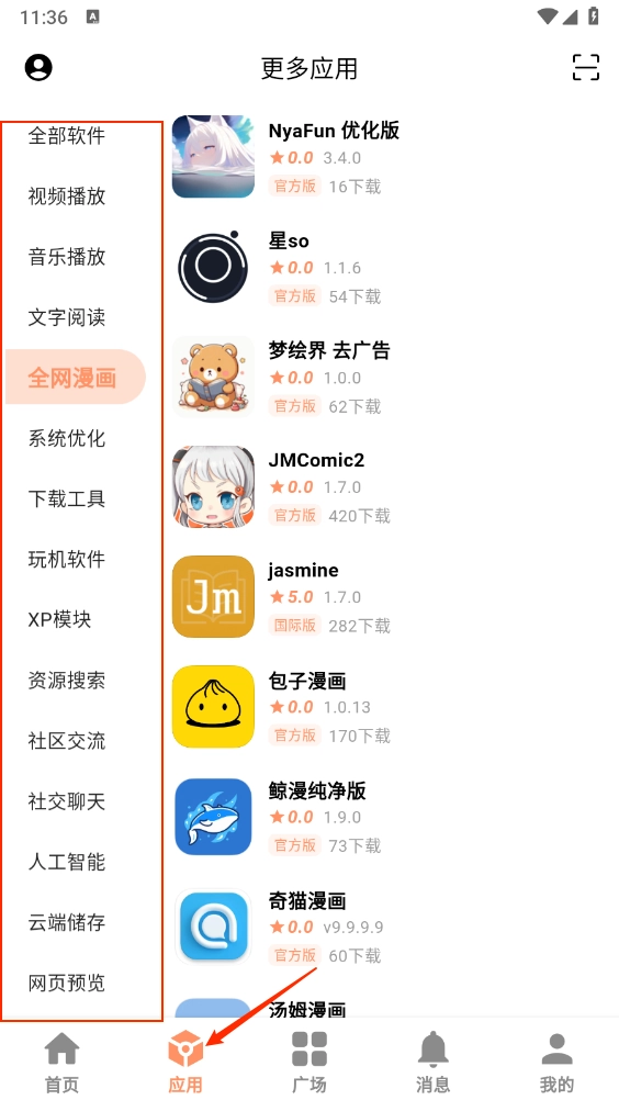 2、进入“应用”板块,按照分类进行选择,具体可参照图示。