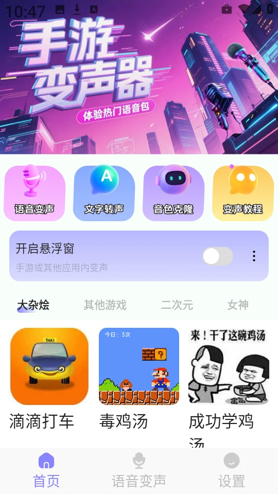 开黑变声器具备语音变声、文字转语音变声、音色克隆等多种功能模式,使用前需手动开启悬浮窗权限,该工具完全免费,还提供丰富的变声教程,适用场景十分广泛。感兴趣的用户不妨来体验一下。