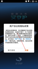 1、当“艾守护”应用启动后,您需要先阅读《用户协议和隐私政策》,随后点击【同意】按钮,即可进入应用的引导页面。