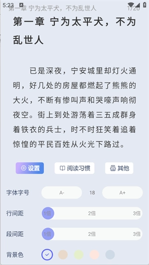 5、点击屏幕任意位置还可以对小说页面进行各种设置