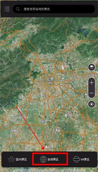 1、打开软件,点击下方“全球景区”;