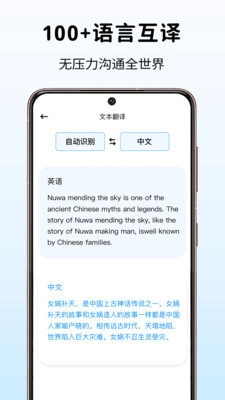 3、多语言互译功能,用户可将英文、法文、日文等多种语言转换为自己熟悉的母语。