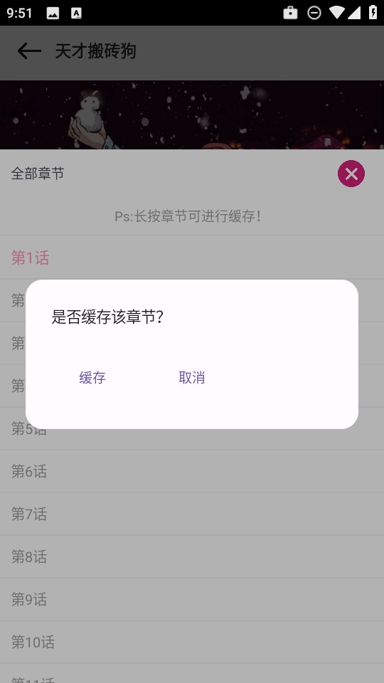 第四步:在弹出的操作选项里,直接点击【缓存】按钮,系统就会自动开始该章节内容的缓存。