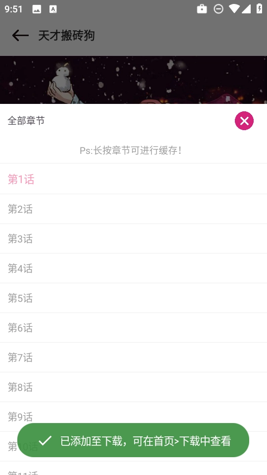 第五步:稍等一会儿,屏幕上方会弹出“已加入缓存”的提示,这意味着该章节已经成功保存到本地了,就算没有网络也能随时阅读,出行、通勤或者断网都不会影响阅读啦!