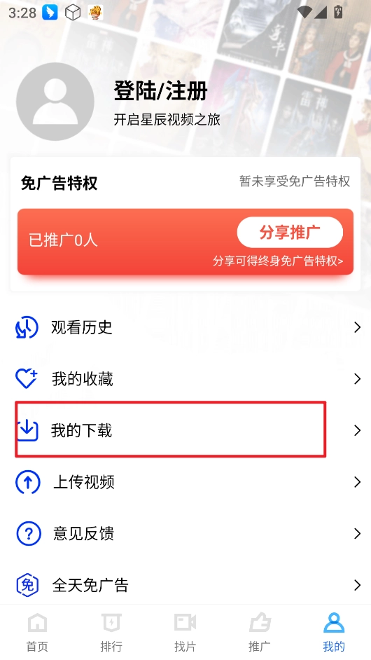 5、进入“我的”页面,点击“我的”模块,就能查看并管理所有已缓存的影片内容。