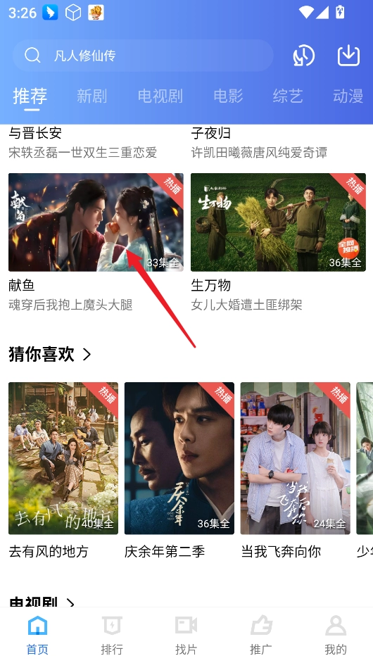2、在首页浏览系统推荐的内容,或者通过顶部的搜索栏输入关键词来查找自己喜欢的影视作品。