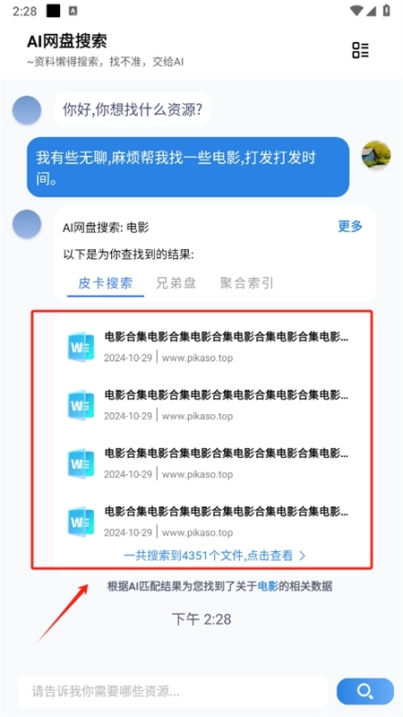 3. AI网盘搜索软件能够迅速帮我们搜索并展示相关结果。