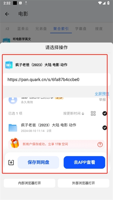 也可以选择保存到我们的网盘中,方便日后查看和使用。