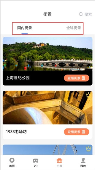 5、在“街景”栏目中,您可以自由切换,查看“全国街景”或“全球街景”的内容。
