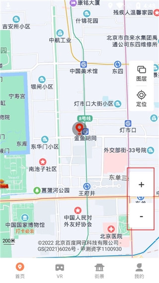 3、借助右侧的“+”和“-”按钮来完成地图的放大与缩小操作。