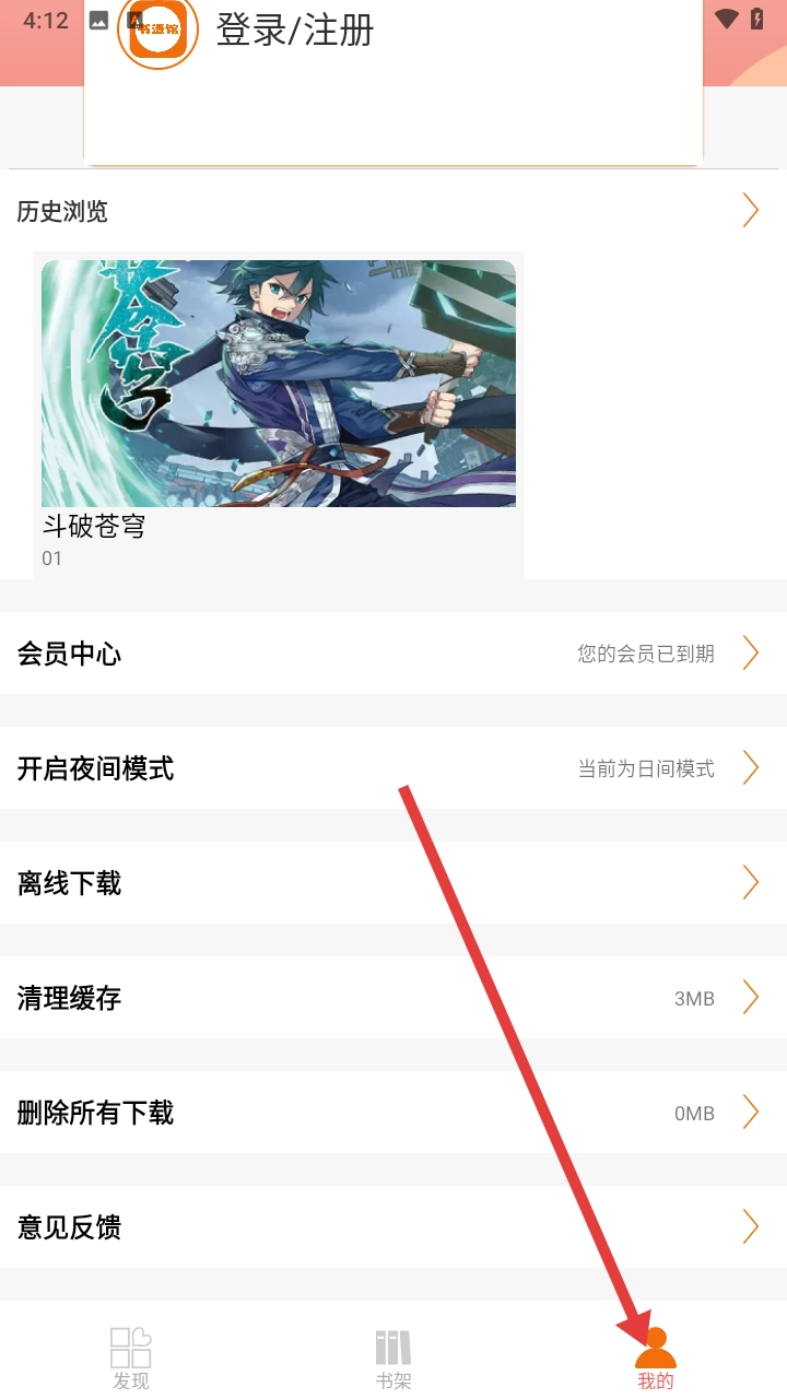 1、打开书漫馆应用,进入主界面后,点击右下角的“我的”个人中心入口。