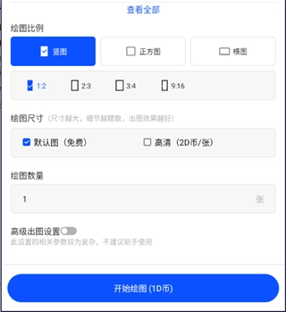 3、随后挑选好所需的绘图比例、尺寸与数量,点击下方的【开始绘图】按钮。