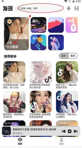 4、直接搜索你喜欢的音乐就行,在首页的歌单里就能看到你常听的歌曲。