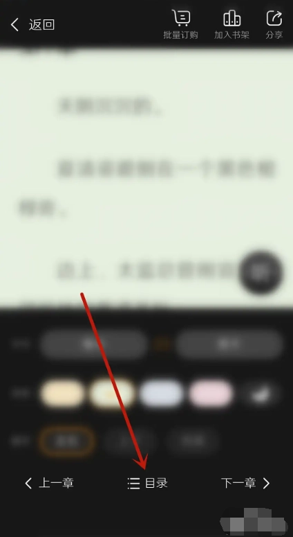 2、在小说阅读界面,点击屏幕上的【目录】按钮,调出章节列表。