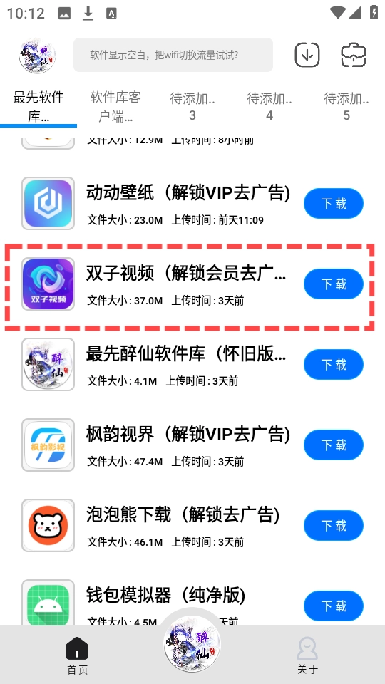 3、点击任意感兴趣的软件查看详情,这里以“双子视频”为例进行演示。