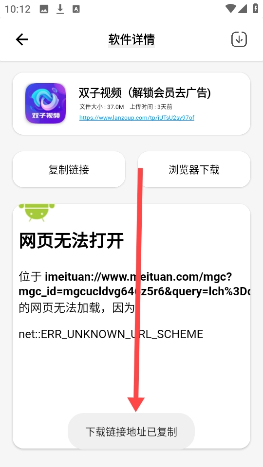 5、若选择“复制链接”选项,页面会即刻显示“链接地址已复制”的提示,便于用户将其粘贴到浏览器或其他工具里进行手动操作。