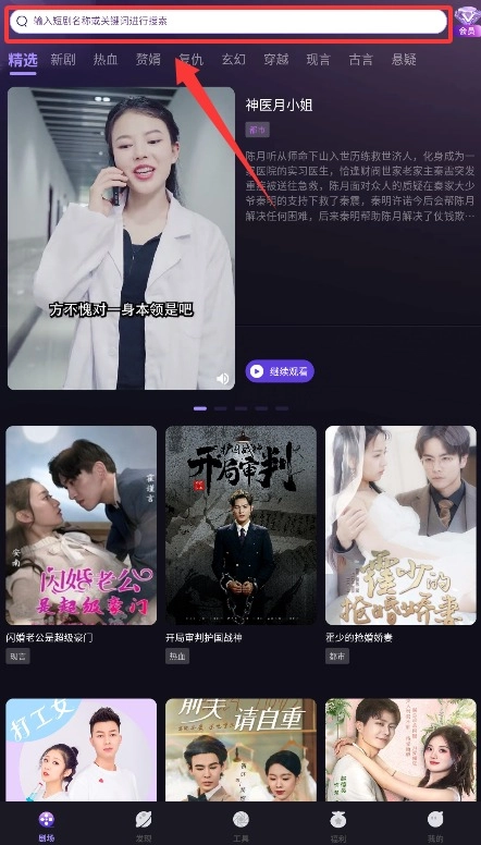 3、在搜索框中输入想要查找的短剧名称或相关关键词,系统会马上展示出对应的影视内容,方便你挑选观看。