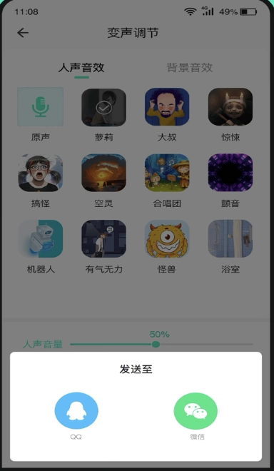 3、操作界面设计直观简洁,所有声效都能通过点击一键快速应用或切换,同时支持用户对音调、音色、混响等参数进行微调,从而实现高度个性化的声音定制。
