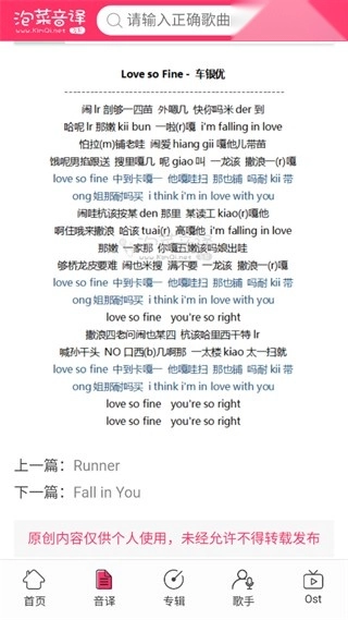 1、在本站打开软件,选择需要查看音译的歌曲,或者在搜索框中搜索歌曲