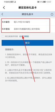 5、完成第五步进入后,输入卡片相关信息,即可绑定礼品卡,后续可根据实际需求进行使用。