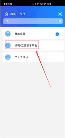 3、接下来就可以在“我的工作台”界面,选择所需的工作台(例如湖南/江西演示平台),系统会自动切换到所选的工作台。