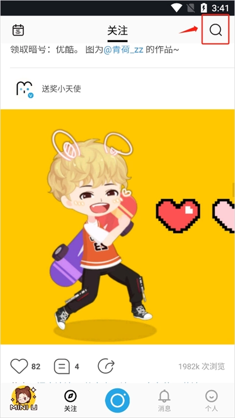 1、你可以主动邀请好友,在广场页面点击右上角的“搜索”按钮。