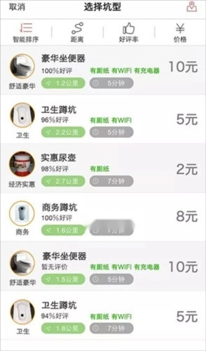 4、如厕环境评价:用户在使用完厕所后,还能对如厕环境进行评价,像WIFI信号、厕纸质量、充电器线长度等方面都可以成为评价内容,这些评价有助于厕所主人提升服务质量。