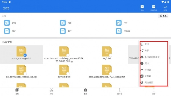 选中文件后,即可在下方工具栏中执行对应的批量操作,点击“更多”可查看所有操作选项。