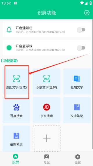 2.点击【识别文字(区域)】功能。