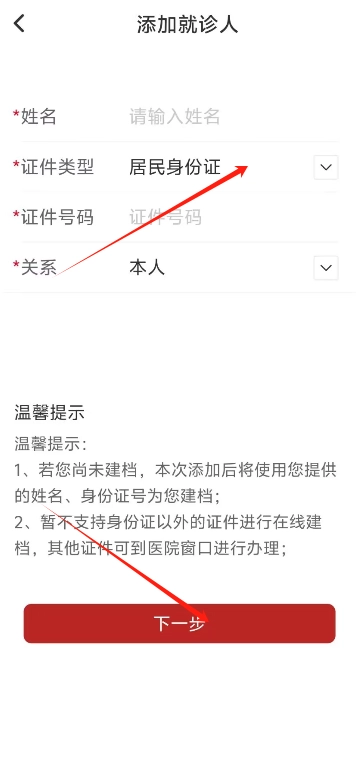 3、用户只需输入就诊人的姓名、证件号码等信息,即可完成审核添加流程,从而提升用户预约就医的便捷程度。