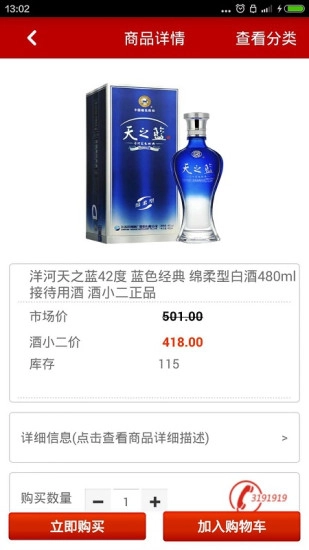 3、查看酒水的产品情况以及价格、购买