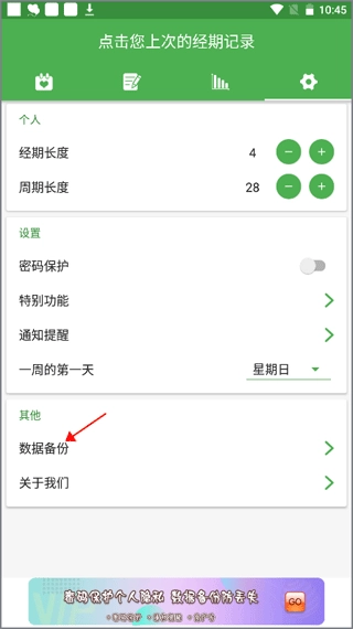 3、数据统计:这款软件具备多样的数据统计功能,像平均月经期时长、平均月经周期长度等都涵盖在内,并且这些数据会通过图表的方式呈现出来。