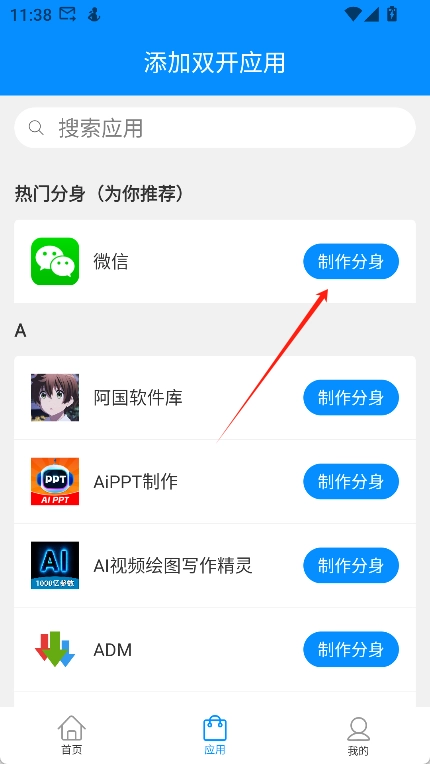 4、选好应用后点击“制作分身”,即可立即生成一个应用分身