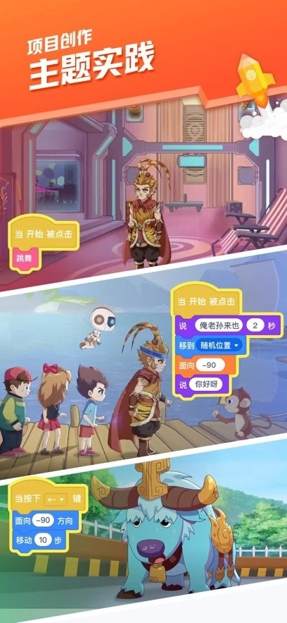 这是一款专注于主题实践的编程教育软件,凭借强大的功能,儿童可以自由参与编程老师的直播课程,享受1对1的教学服务。孩子们不仅能展示所学知识,还能更好地做到举一反三。