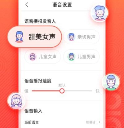 3、我们能够根据自身喜好来设置音色,例如设置成甜美女音、亲切男音等;也可以调整语音播报的速度;