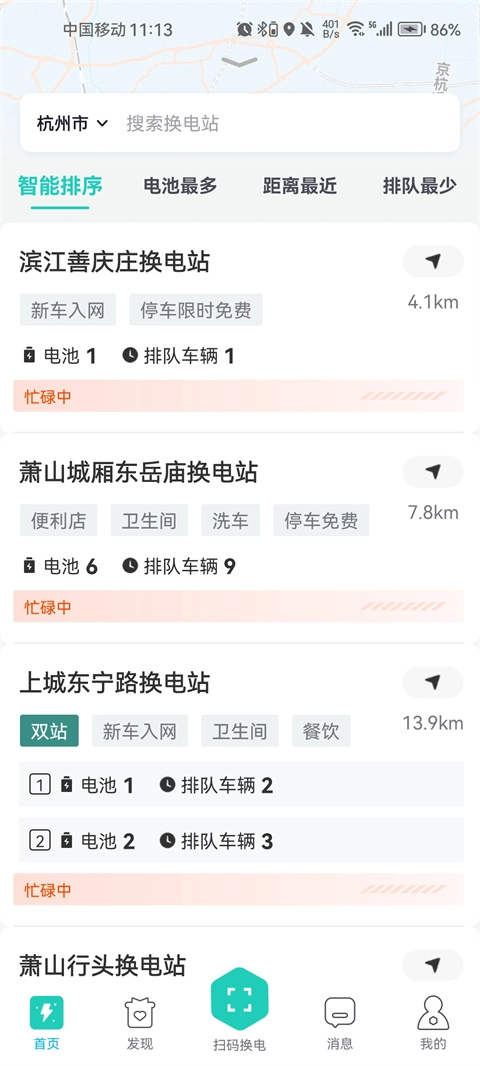 易易换电是一款便捷高效的智能换电服务应用,能帮用户轻松定位附近的换电站,还支持快速导航,换电后即可继续畅享无缝衔接的绿色出行体验!为避免等待,用户也可在线查询换电站的排队状态、可用电池数量等信息,防止出现到达现场却无法换电的尴尬情况。易易换电的使用流程十分简便,只需扫码就能快速启动,通过简单几步即可完成换电操作。