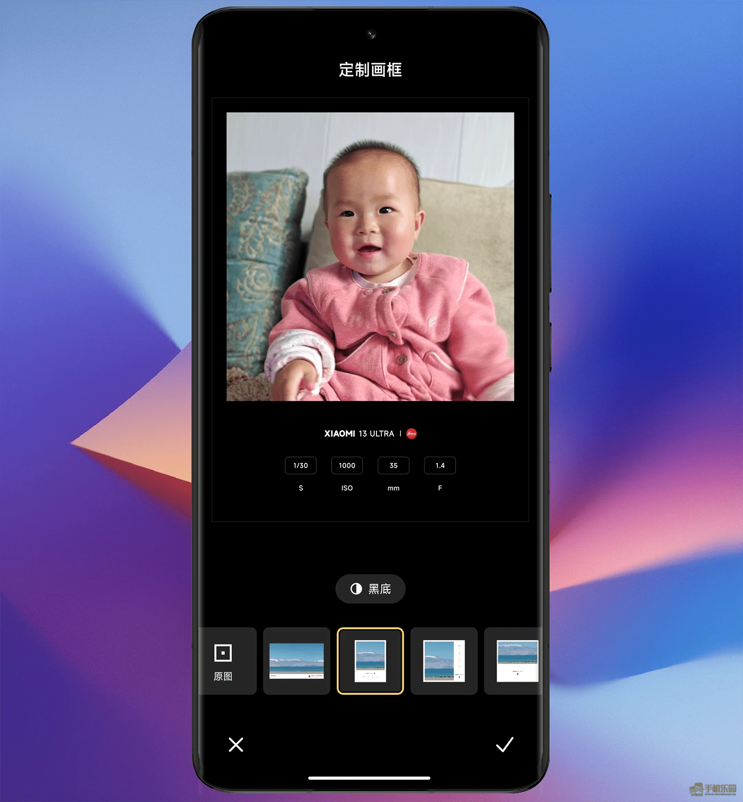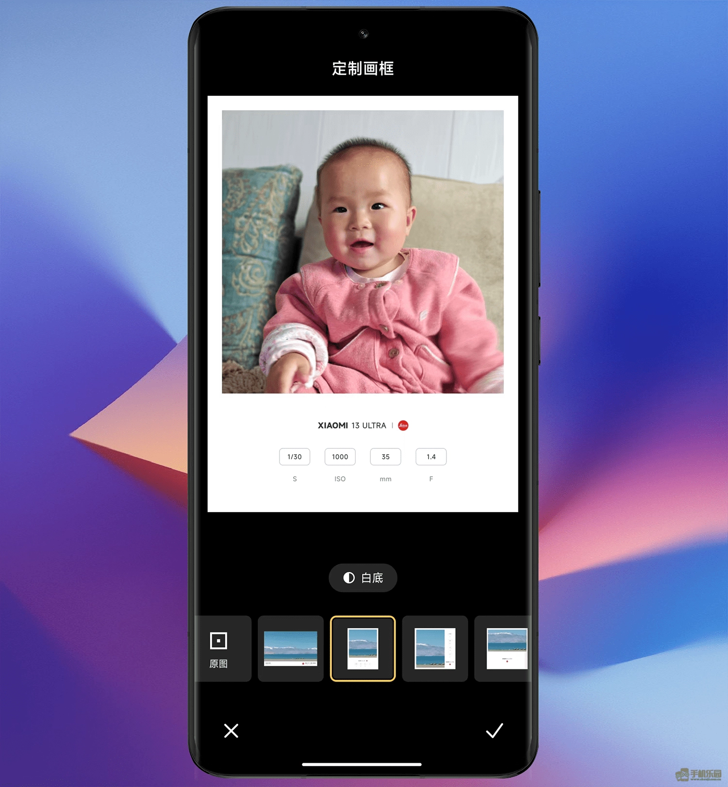 相机设置里的徕卡定制水印会自动添加,不过“萌拍”模式下的照片不会自动添加水印,这时我们可以借助定制画框功能来添加,而且小米13 Ultra配备了10款定制画框,还支持黑、白底色的自由切换。