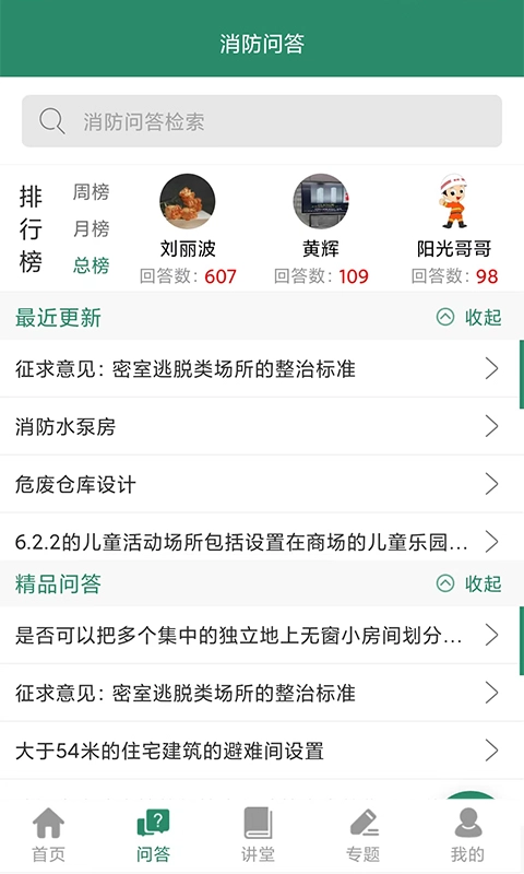 用户可随时通过软件查看消防安全问答的排名列表,便于了解消防安全领域的解答专家。
