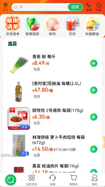我们提供涵盖新鲜果蔬、禽蛋肉类、水产冻货、米面粮油、酒水饮料、调料餐厨等全品类商品,助力餐厅实现一站式采购,全方位满足其购物需求。