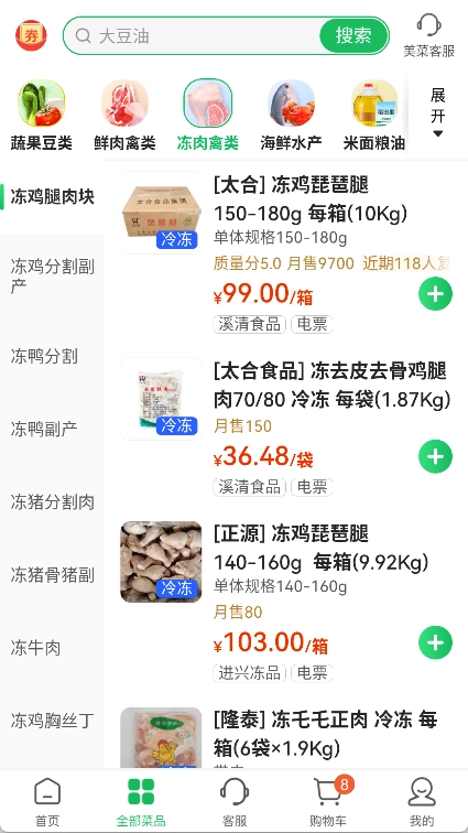 答:您可以在首页或全部菜品界面的顶部空白区域,输入想要找的商品名称来搜索。要是没找到您需要的商品,还能进入“我的”页面,点击“提交新品需求”填写相关信息,我们会依据商户的需求情况来安排采购和销售。