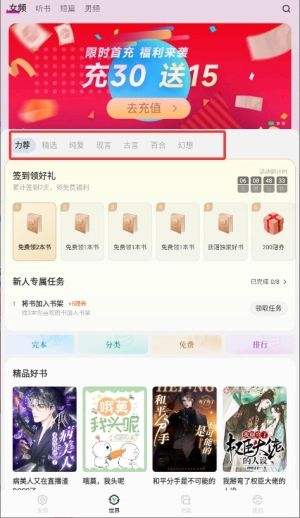 2、在首页导航栏点击“小说分类”选项,即可浏览各类题材的作品以及热门推荐的内容。