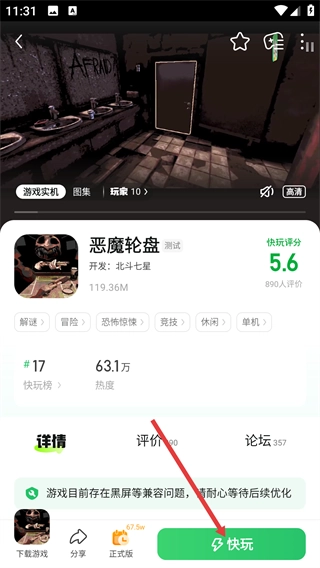 4、在详情页面,能够查看信息、评分等内容,点击【快玩】按钮就能启动体验。